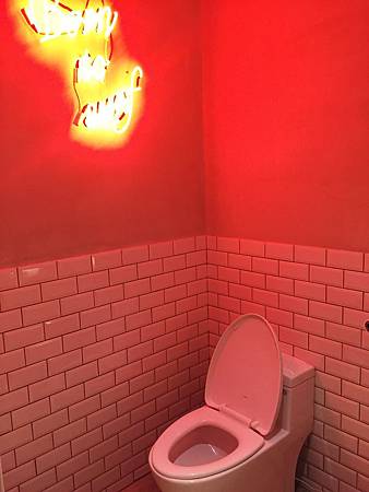 (上圖)廁所走一個美式風格,一進去還可以聞到濃濃的擴香味 (上圖)店內充滿衝浪板裝飾