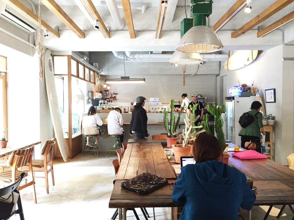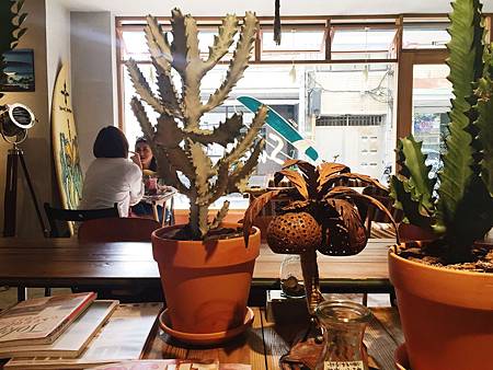 店內裝潢除了有衝浪板外,還有許多棵仙人掌,非常有異國情調 。